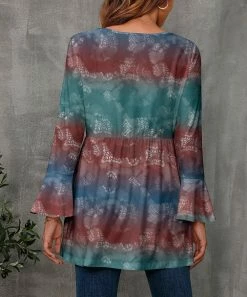 New π Z Avenue Silver & Tan Floral V-Neck Trumpet-Sleeve Empire-Waist Tunic – π© Women π€©