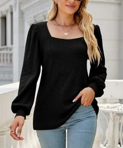 Wholesale π Z Avenue Black Waffle-Knit Square-Neck Puff-Sleeve Top – π© Women & Juniors π―