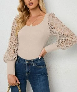 Discount π Z Avenue Caramel Lace-Accent Long-Sleeve V-Neck Tunic – π© Women & Juniors π€©