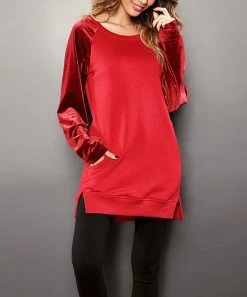 Hot Sale β€οΈ Z Avenue Burgundy Velvet-Sleeve Raglan Sweatshirt – π© Women & Plus β€οΈ