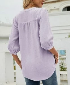 Top 10 β Z Avenue Light Purple Swiss Dot Three-Quarter Sleeve Button-Front Top – π© Women β€οΈ