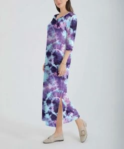 Best Sale π€© Z Avenue Purple & Aqua Tie-Dye Three-Quarter Sleeve Maxi π Dress – Plus π