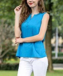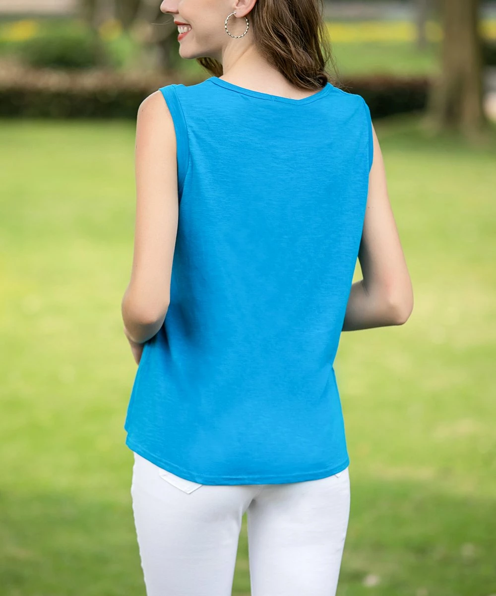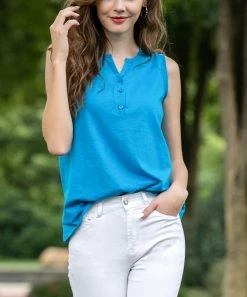 A trio of buttons punctuate the front of the sleeveless top and bring casual charm to your ensemble.