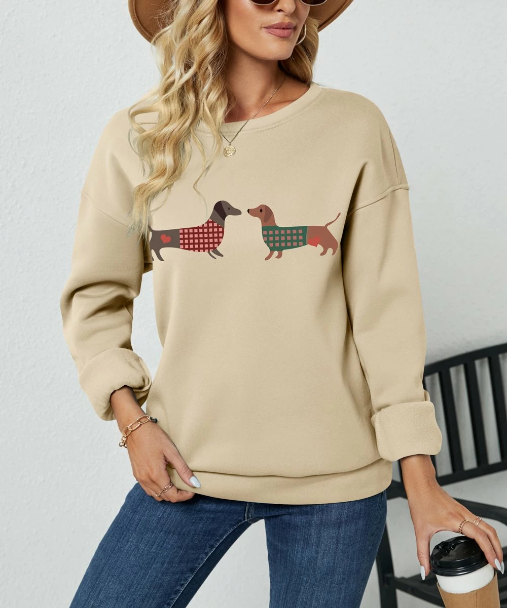 This graphic pullover is designed with a crew neckline and long sleeves.