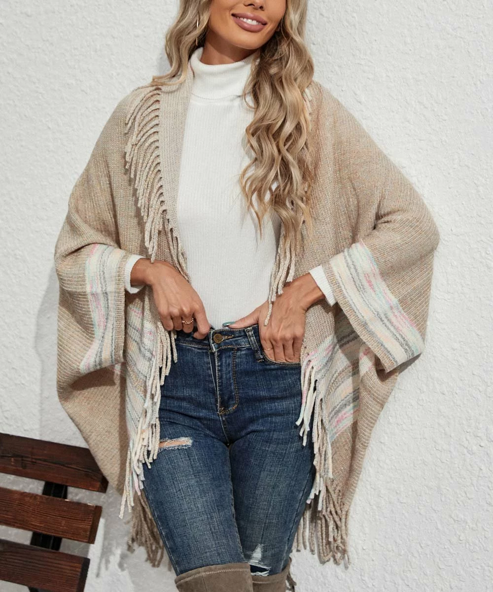 Layer this fringe-accented cardigan to create a boho-chic look that will be sure to keep you cozy in fashion-forward style.