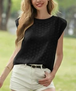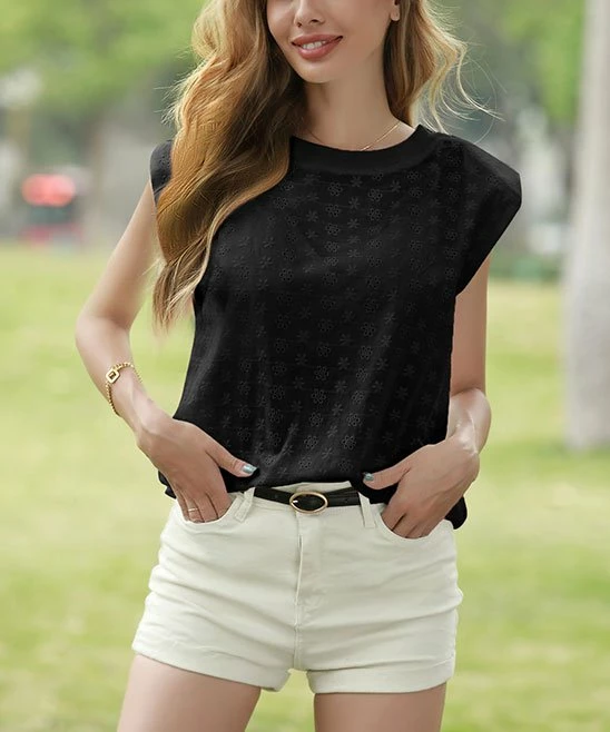Bring a sweet and feminine touch to your sunny-day looks with this breathable cap-sleeve top accented with a keyhole back and eyelet design.