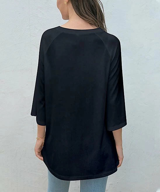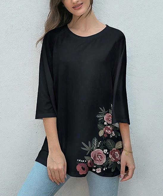 Greet warm-weather days in effortlessly-chic style when you rock this lightweight tunic with your favorite jeans or leggings. Stylish three-quarter sleeves and a bold-patterned design add eye-catching flair to the look.
