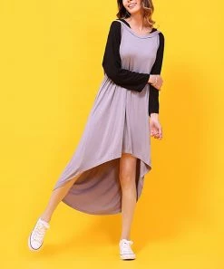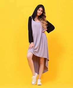 This soft dress’s babydoll waist gives way to a dramatic hi-low hem to help you make an impact with every step, skip and spin.