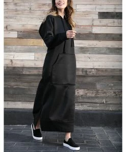 This dress puts fashion and function on equal footing with a sweatshirt-inspired silhouette that grazes your ankles. The generous kangaroo pocket adds an element of convenience.