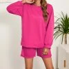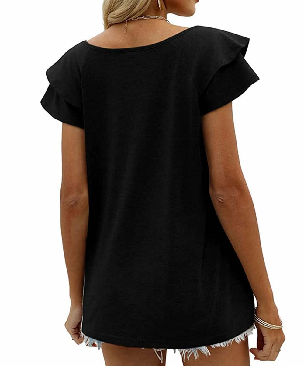 This top features a solid, versatile hue and layered short sleeves.
