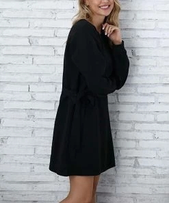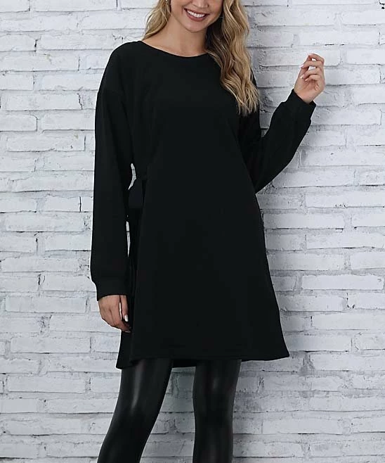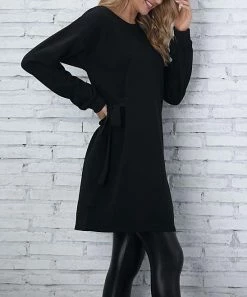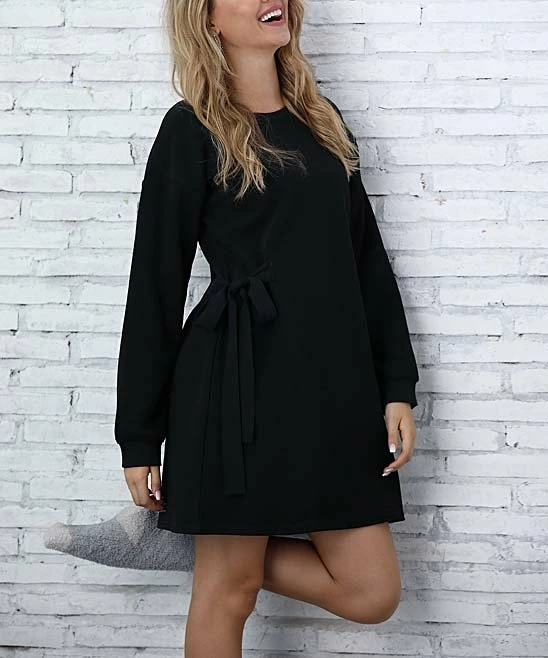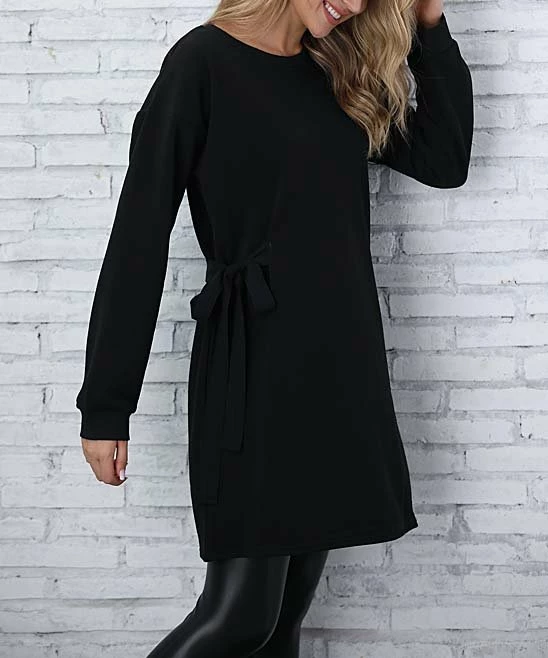 Cozy comfort goes to great new lengths in the form of this dress crafted out of sweater knit. Side ties let you cinch the waist for a flattering effect.