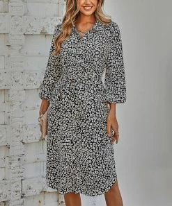 Poised for work or weekending, this shirt dress is designed with an abstract floral print and puff sleeves for a little extra drama. Balanced with a waist sash that flatters your figure.