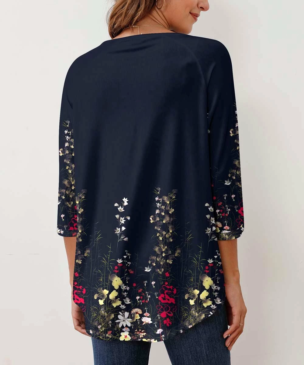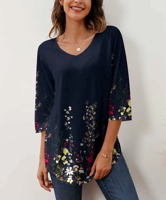 Add a little intrigue to your everyday style in this relaxed three-quarter sleeve tunic featuring an attention-grabbing print and movement-loving stretch.