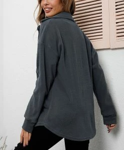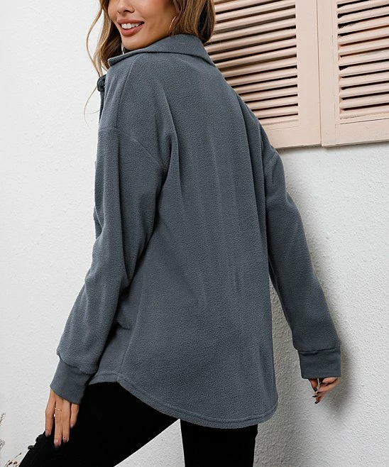 This fuzzy jacket is an ideal combination of shirt and sweater and features a button-up front and a just-right fit.