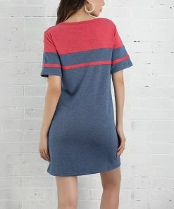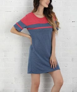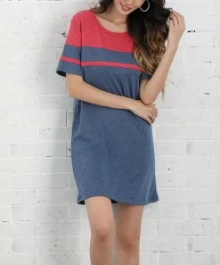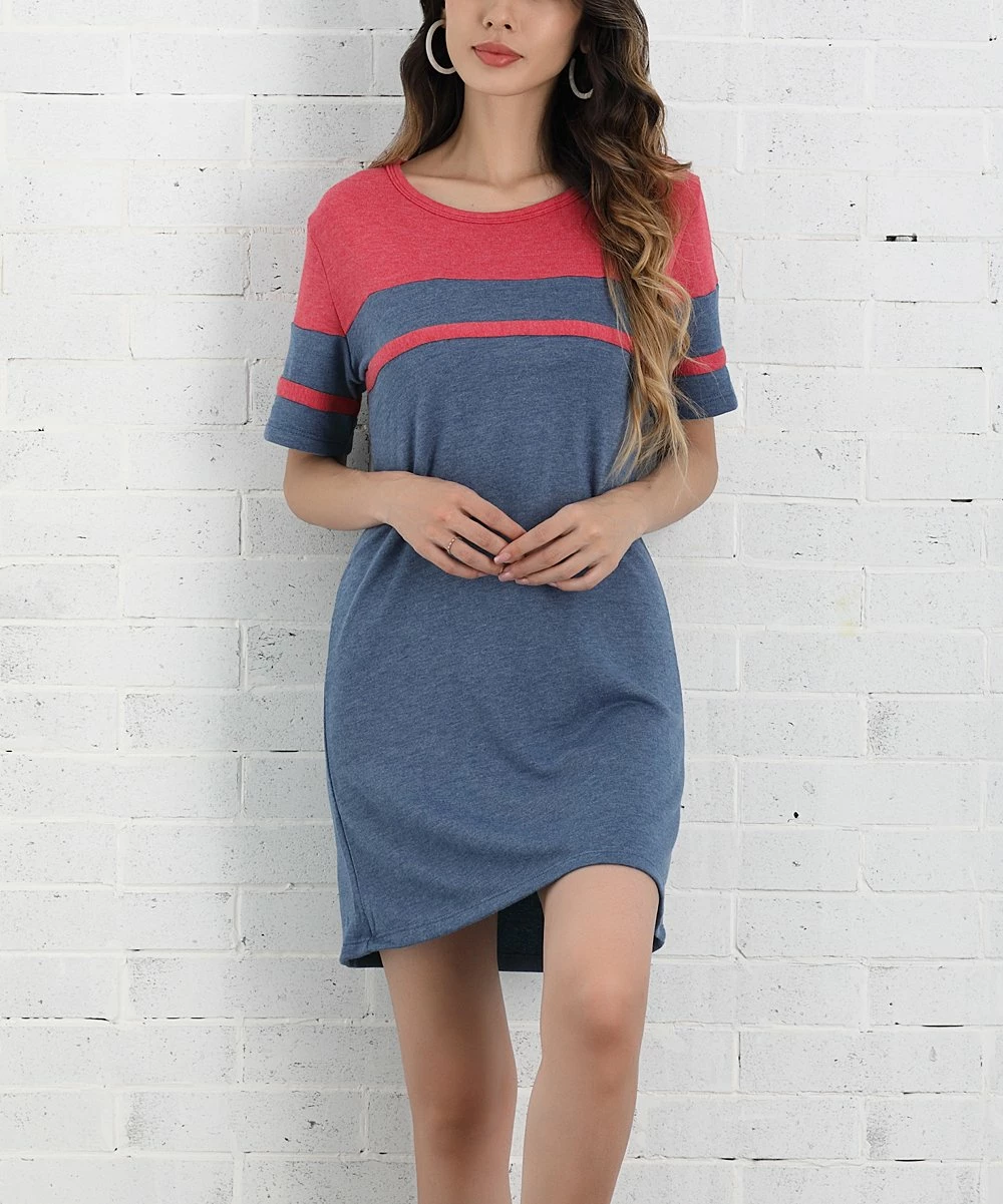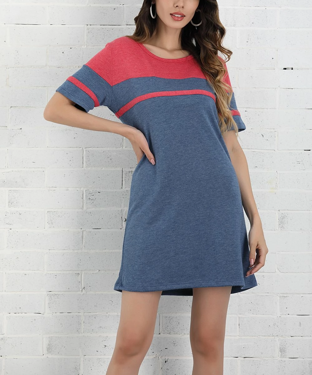 Chunky stripes across the neckline lend sporty charm to your casual collection in the form of this relaxed dress.