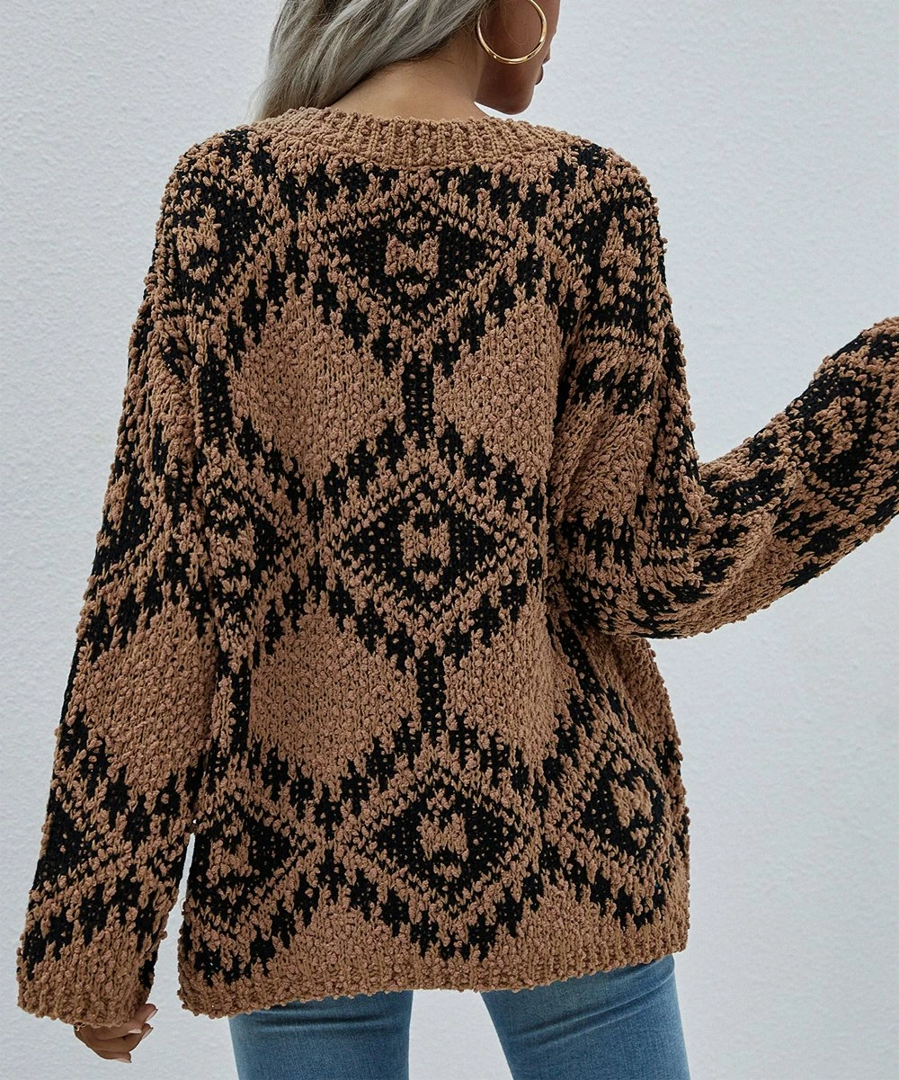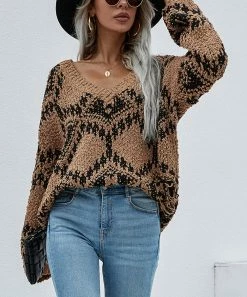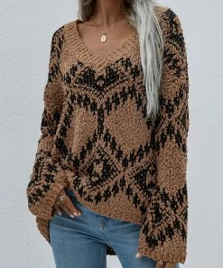This v-neck sweater features an oversize fit for cozy comfort in cooler weather.