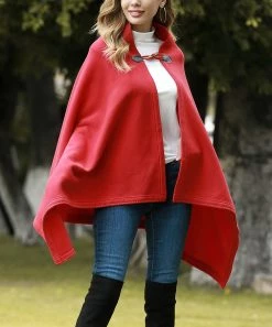 Layer up your chilly-climate look with this cozy and flowy cape featuring a versatile hue and retro toggle button closure.