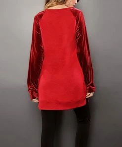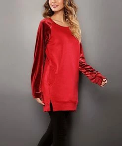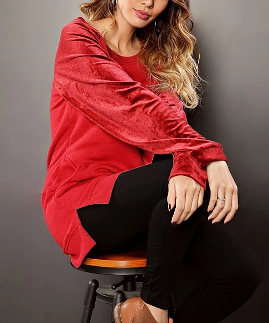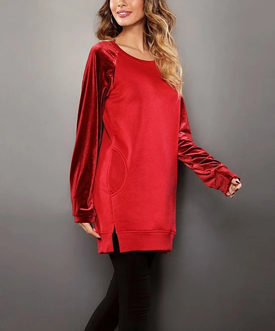 Make a modern-chic style statement in this sweatshirt featuring texture-rich velvet sleeves and of-the-moment slits at the hem. A relaxed fit ensures daylong comfort.