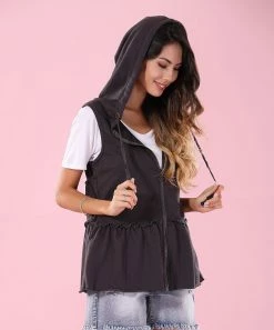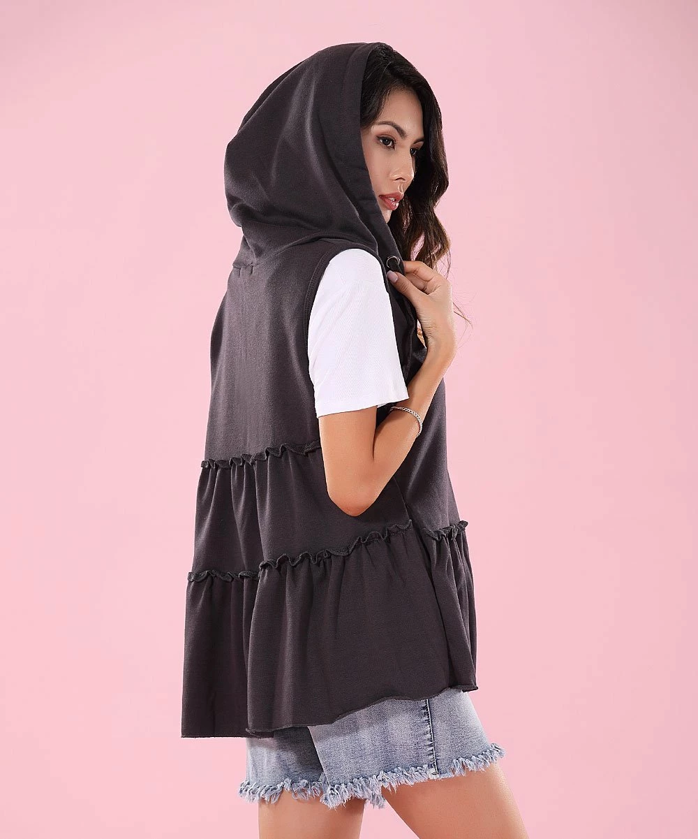 Fitted with a flared ruffle hem, this cotton-blend vest is fastened with a hood to keep you comfortable on breezy days.