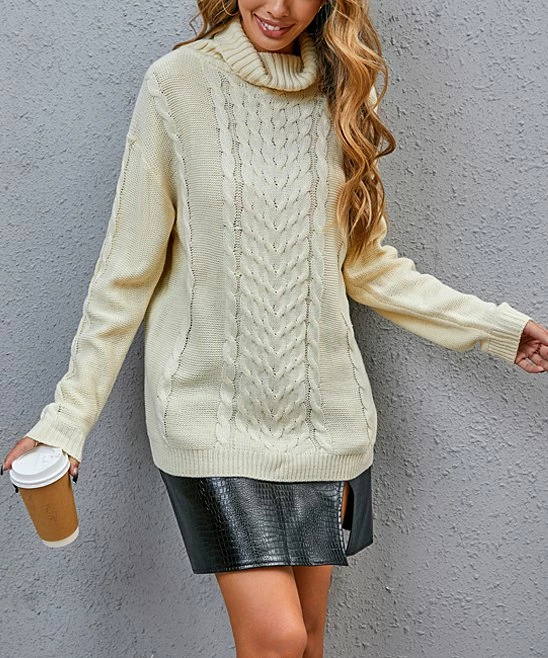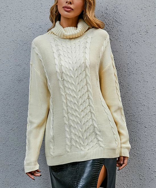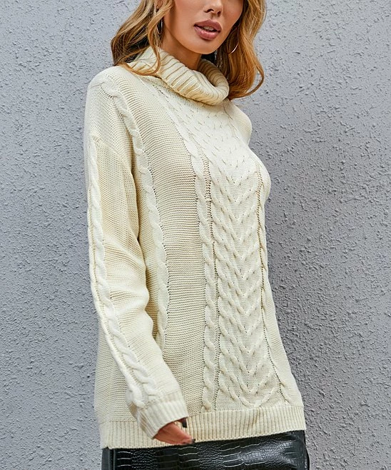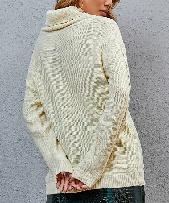 Thanks to a chunky knit and a roll-down turtleneck, this sweet sweater will wrap you in warmth and style.