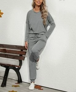 - Includes one dark gray sweatshirt and one pair of dark gray joggers (two pieces total)