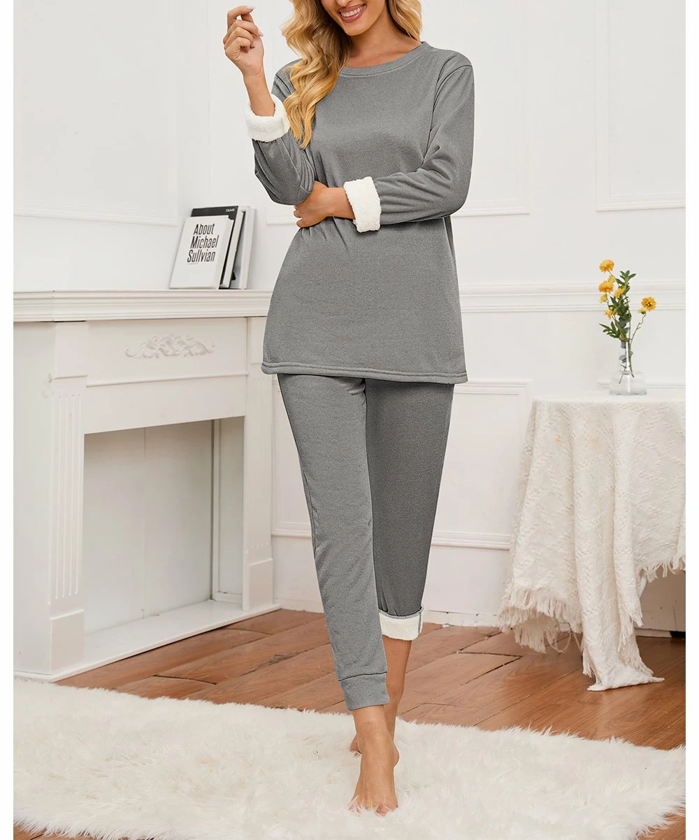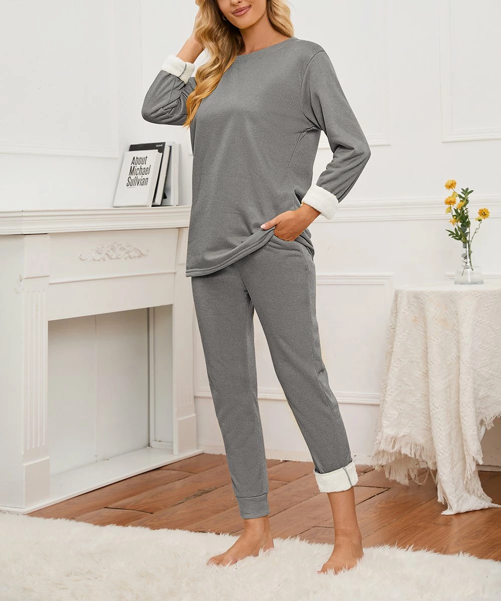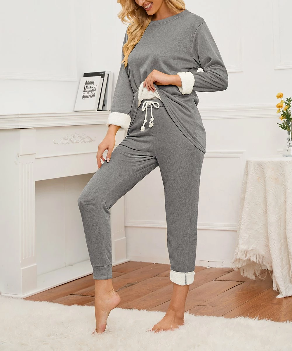 Chilly days are no match for this cozy set that offers sherpa lining in the top and bottoms.