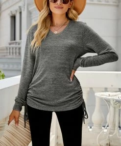 Long-sleeve top with a form-fitting tie hem and a flattering V-neckline.
