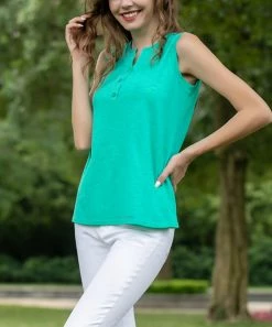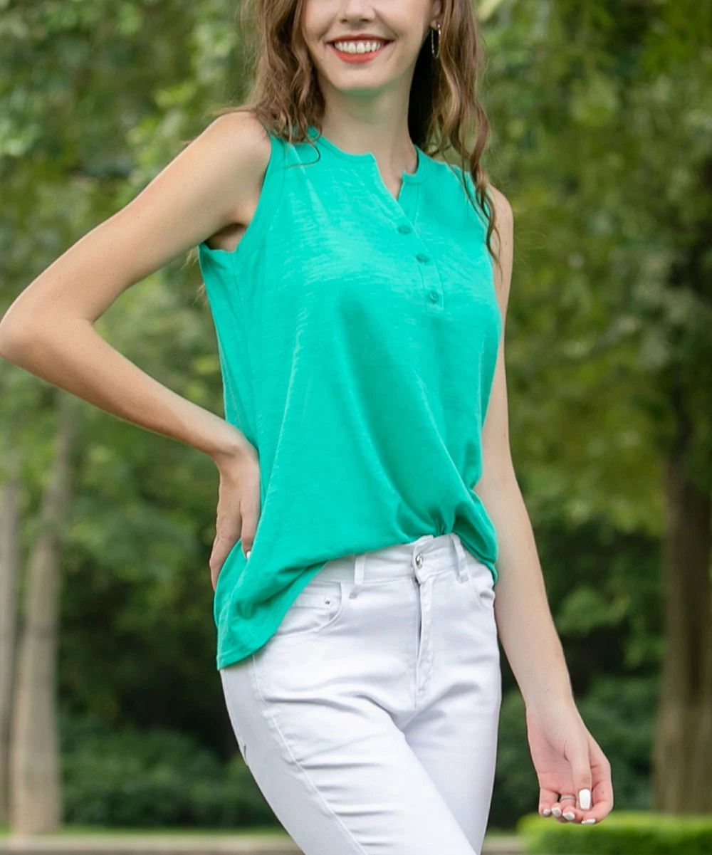 Discount ✨ Z Avenue Dark Mint Henley Cotton Tank – πŸ‘© Women & Plus 😍