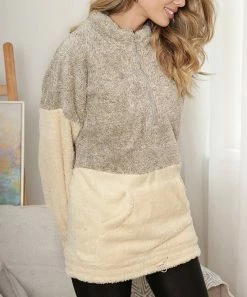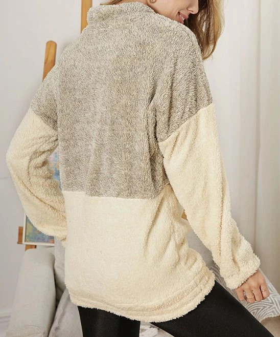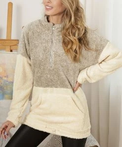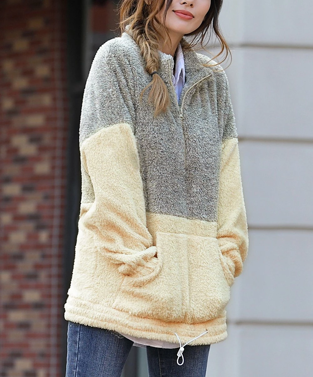 A crisp color block pattern, convenient pocket to warm your hands and cozy design make this quarter-zip sweater a must-have when the temperature drops.