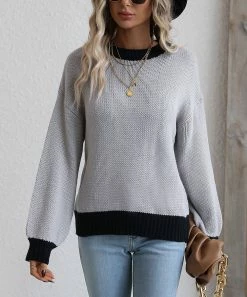 Casual long-sleeve sweater featuring a contrasting hem, cuffs and neckline.