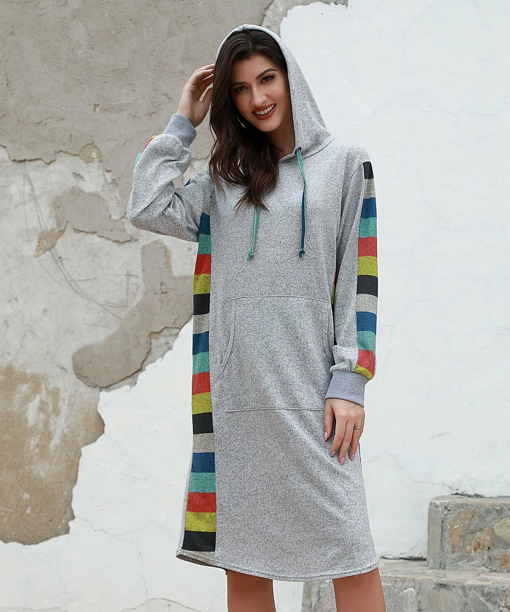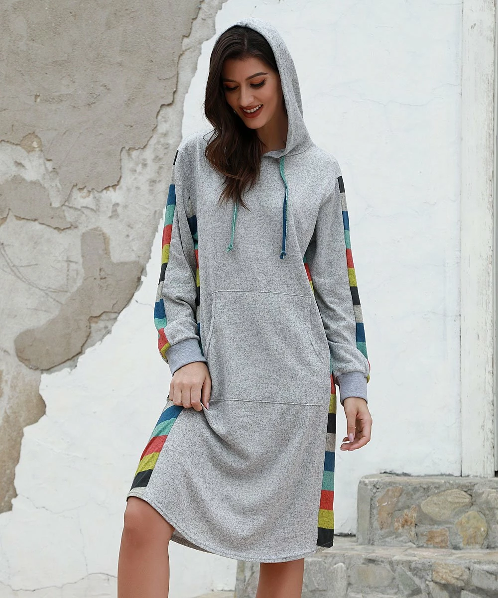 Add some casual flair to your easygoing day by throwing on this one-and-done sweatshirt dress designed with classic hoodie details.