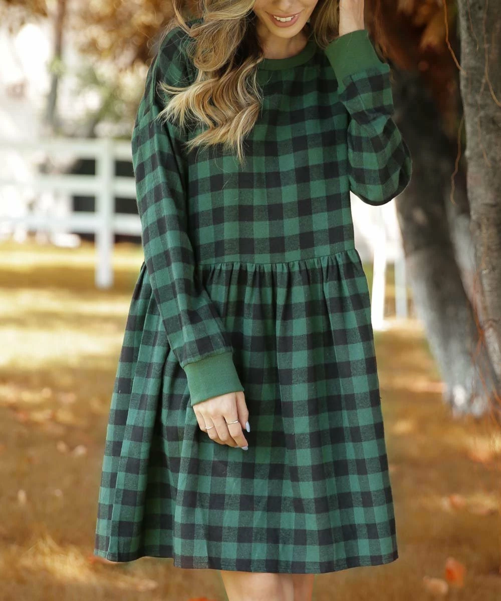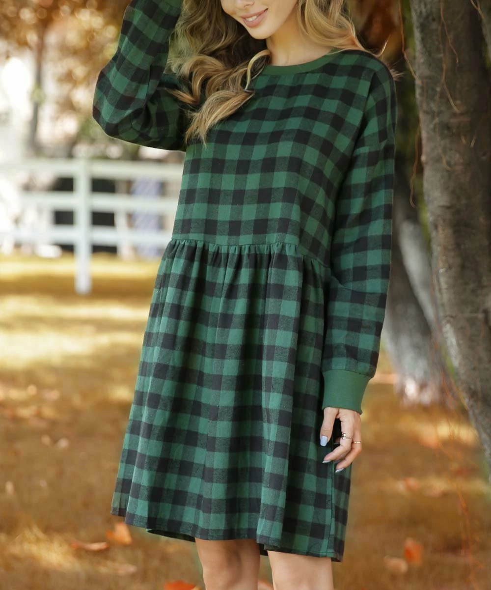 Upgrade your closet staples with this plaid A-line dress that offers versatility without sacrificing elegance.