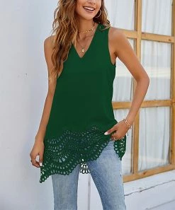 A sleeveless tunic offering a delicate lace hem and a flowy-chic silhouette that pairs effortlessly with your fave leggings or jeans.
