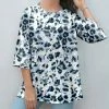Boost your casual outfits with this comfortable three-quarter sleeve tunic finished in a faded leaf print and spun with a pinch of stretch for a feel-good fit.