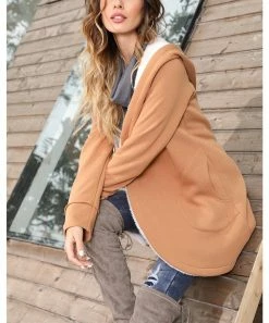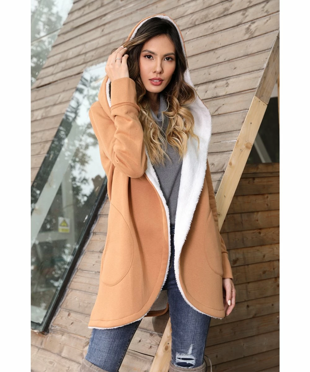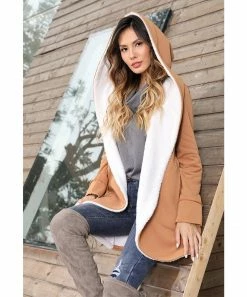 Add a cozy layer of warmth to your ensemble with this jacket that boasts a thick sherpa lining along the body and a hood to hold back the cold on chilly days.