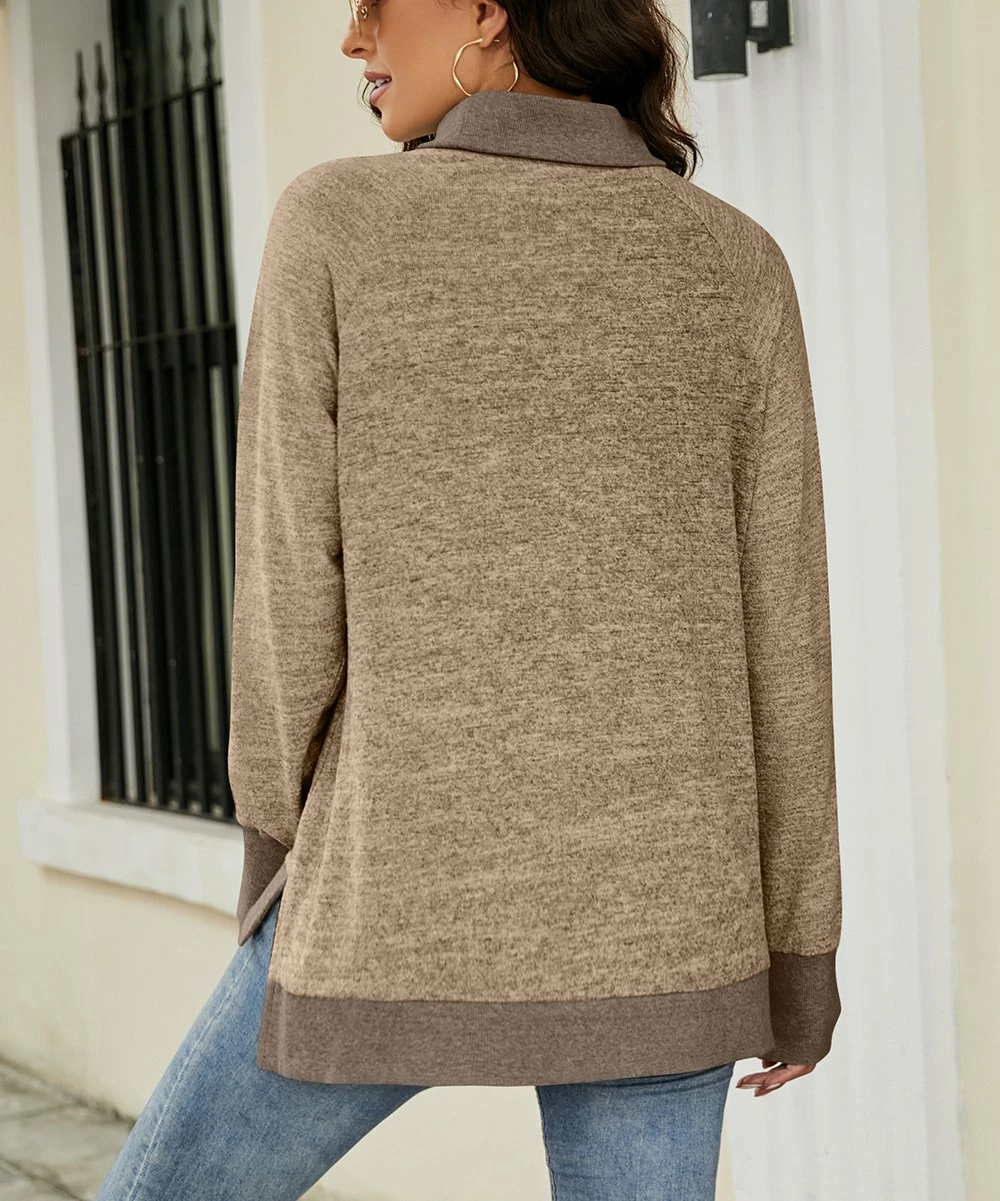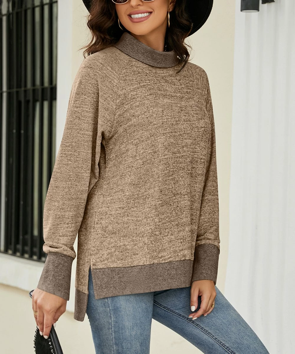 Long-sleeve tunic with a cozy cowl neckline and a versatile solid hue.