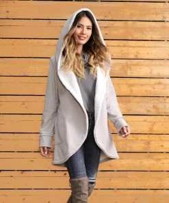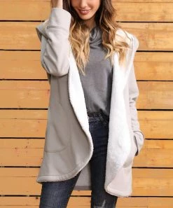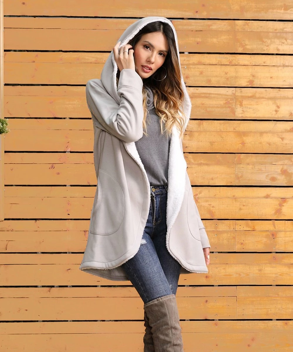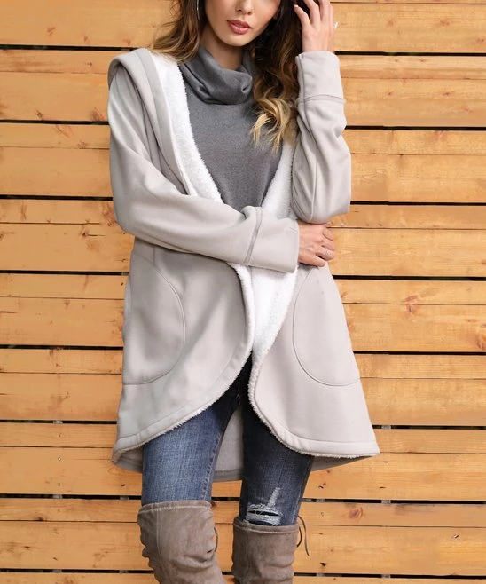 Add a cozy layer of warmth to your ensemble with this jacket that boasts a thick sherpa lining along the body and a hood to hold back the cold on chilly days.