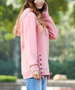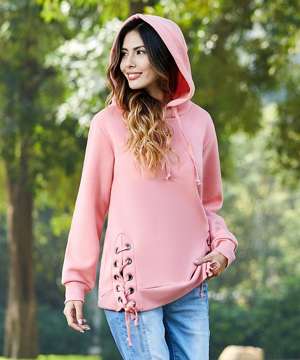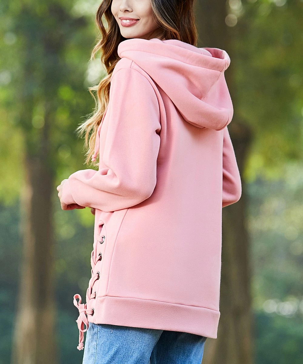 Crisscrossing laces bring trend-right vibes to your casual look thanks to this cozy hoodie.