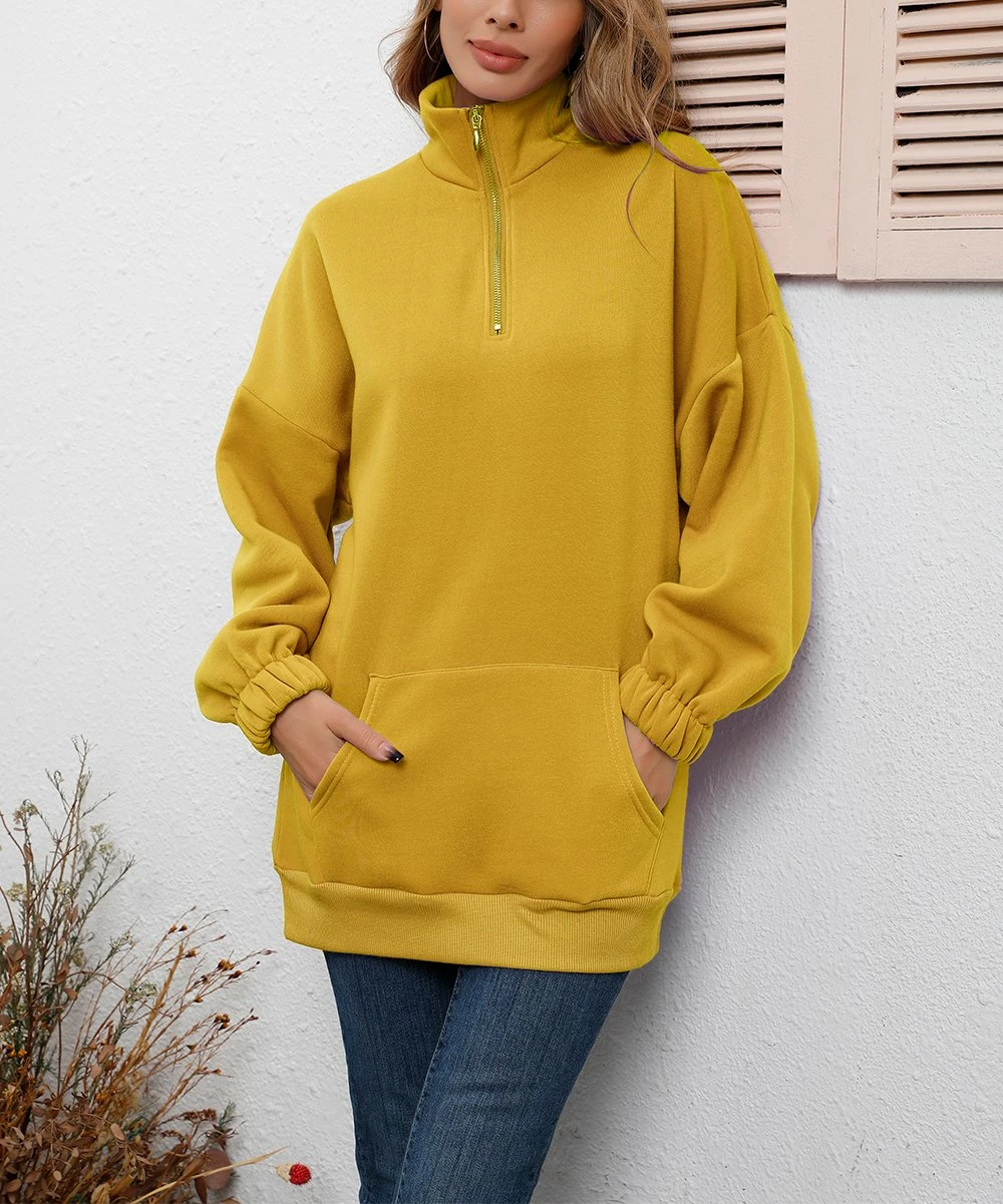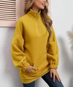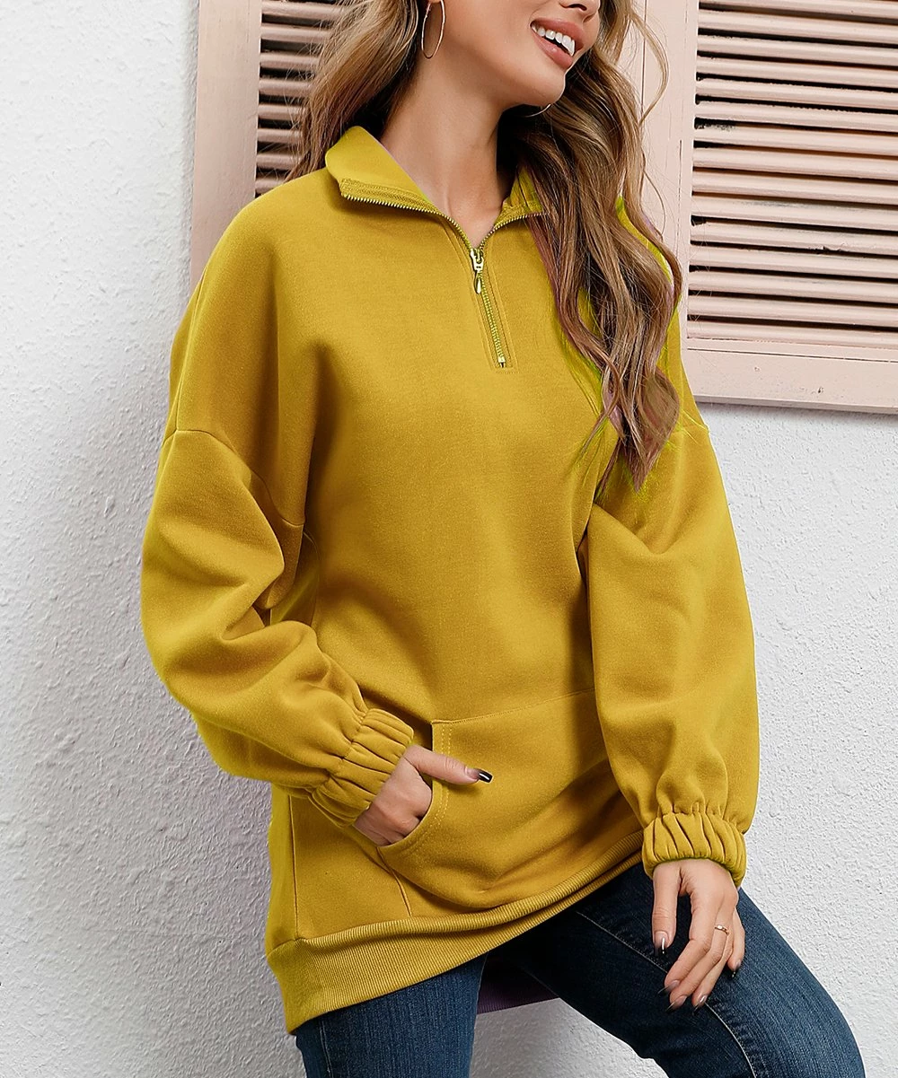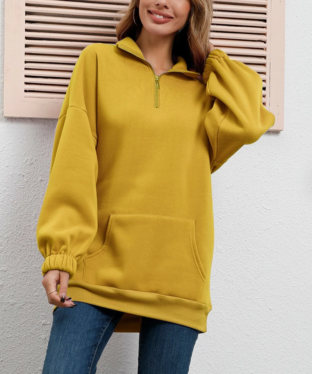 The ultimate throw-on-and-go layer, this slouchy pullover features a quarter-zip neckline, puffed sleeves and a casual kangaroo pocket.