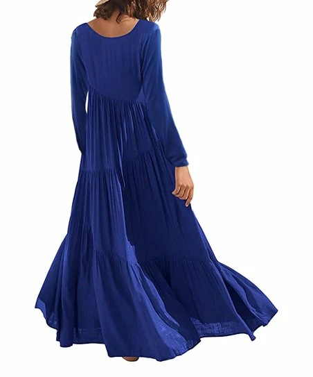 Flow through the day in this gracefully tiered maxi dress featuring long sleeves and breathable cotton-blend material.