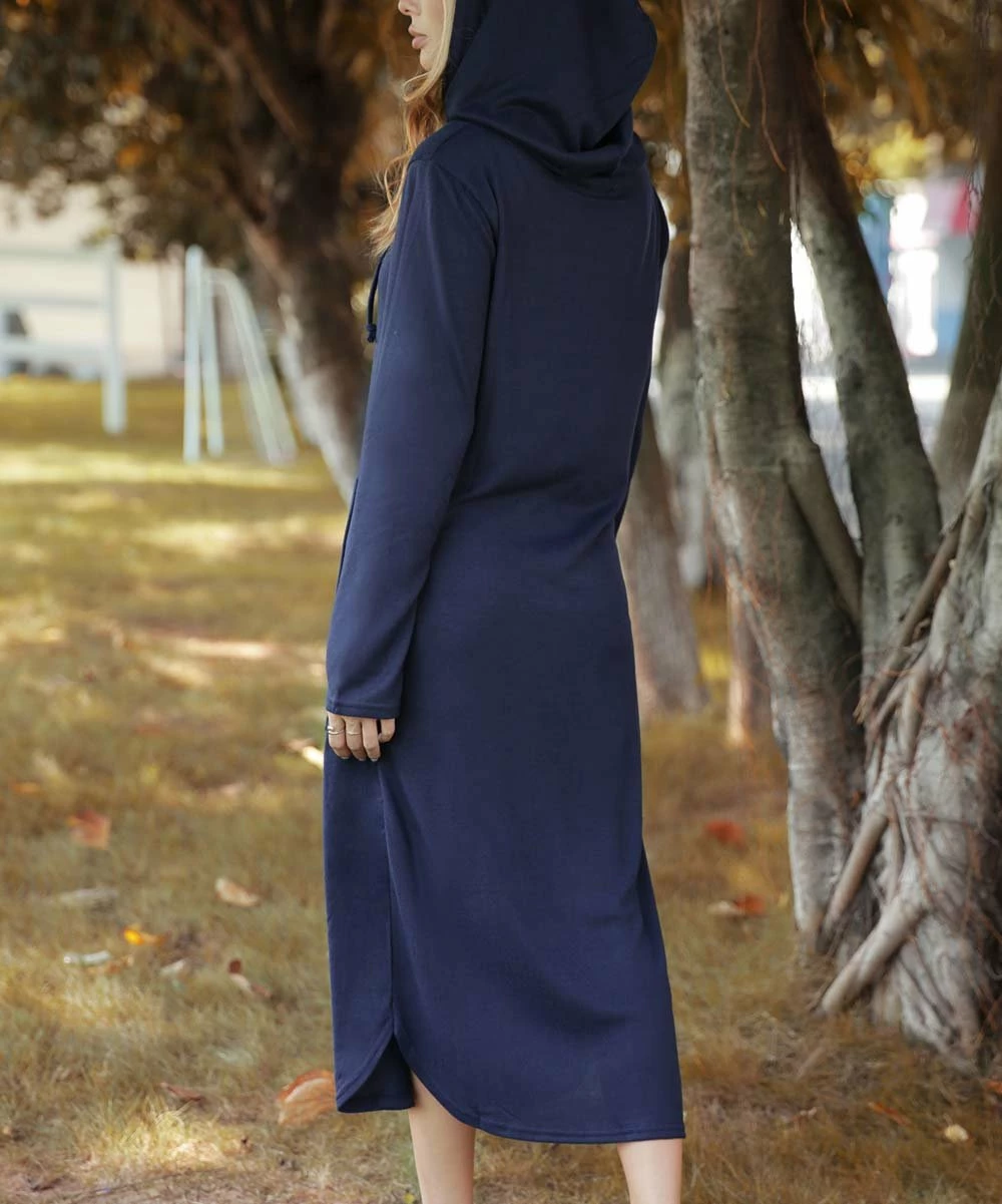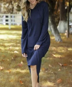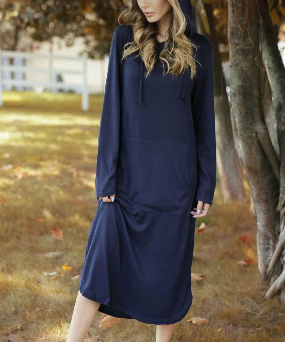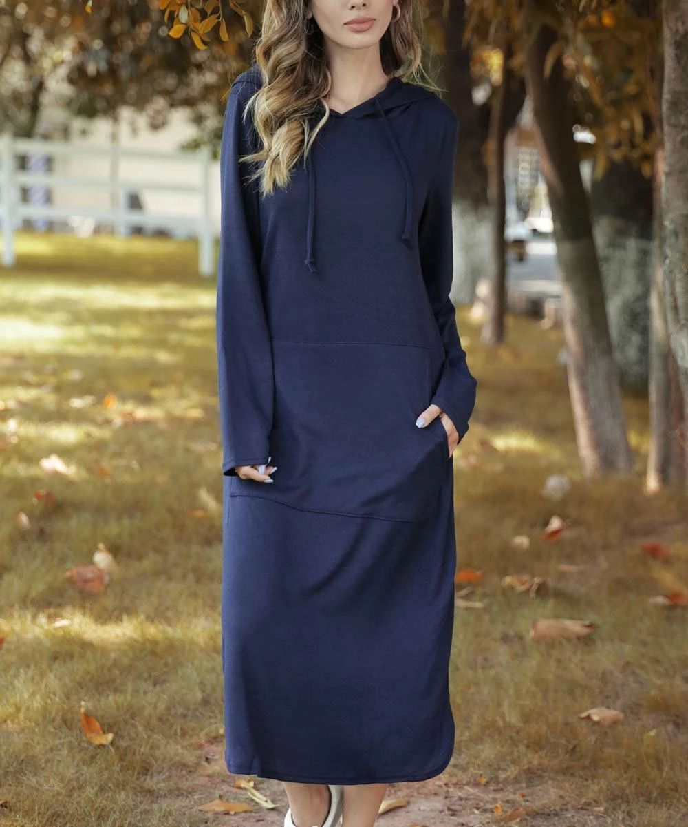 Reimagine favorites with this hoodie dress that playfully extends to an ankle-kiss length. The best part is still having a cozy kangaroo pocket and hood for extra chilly days.
