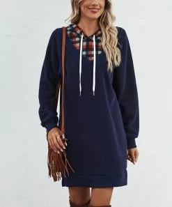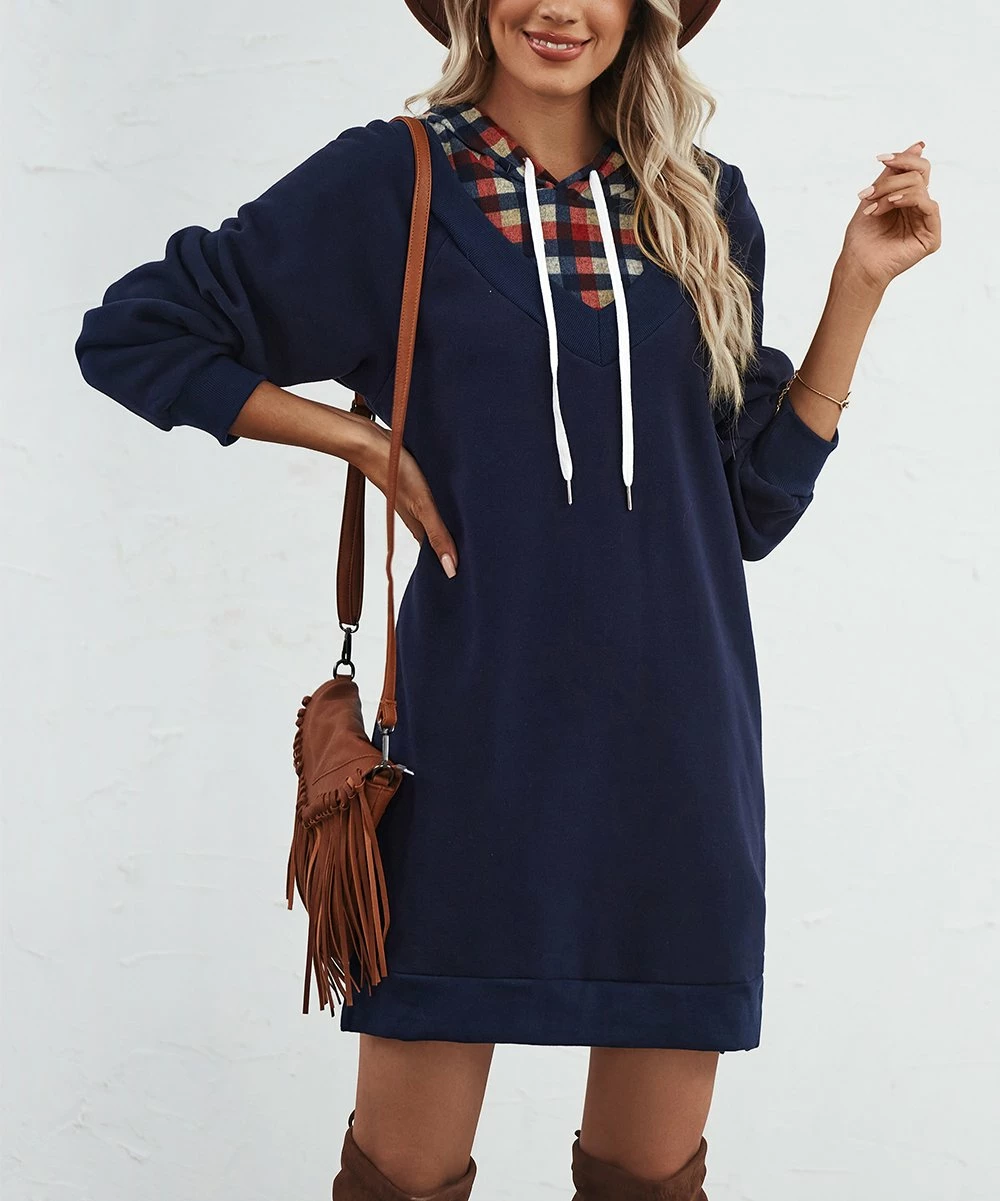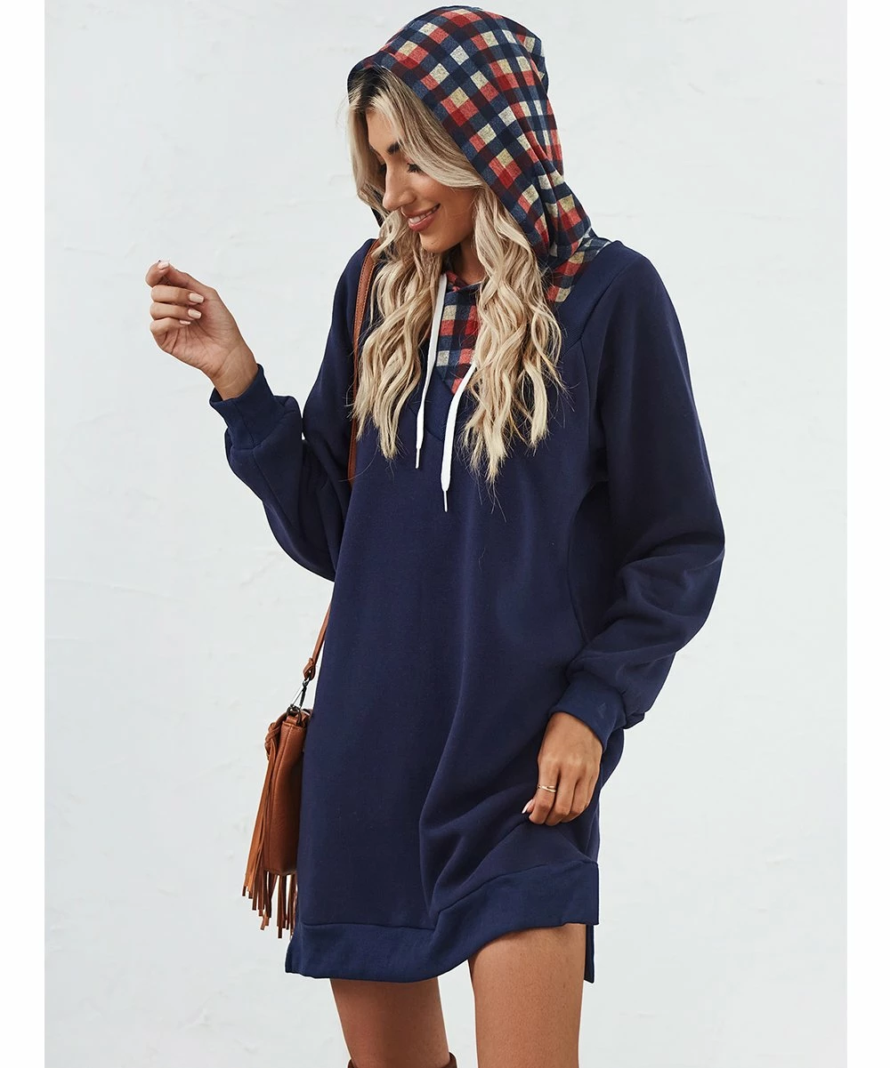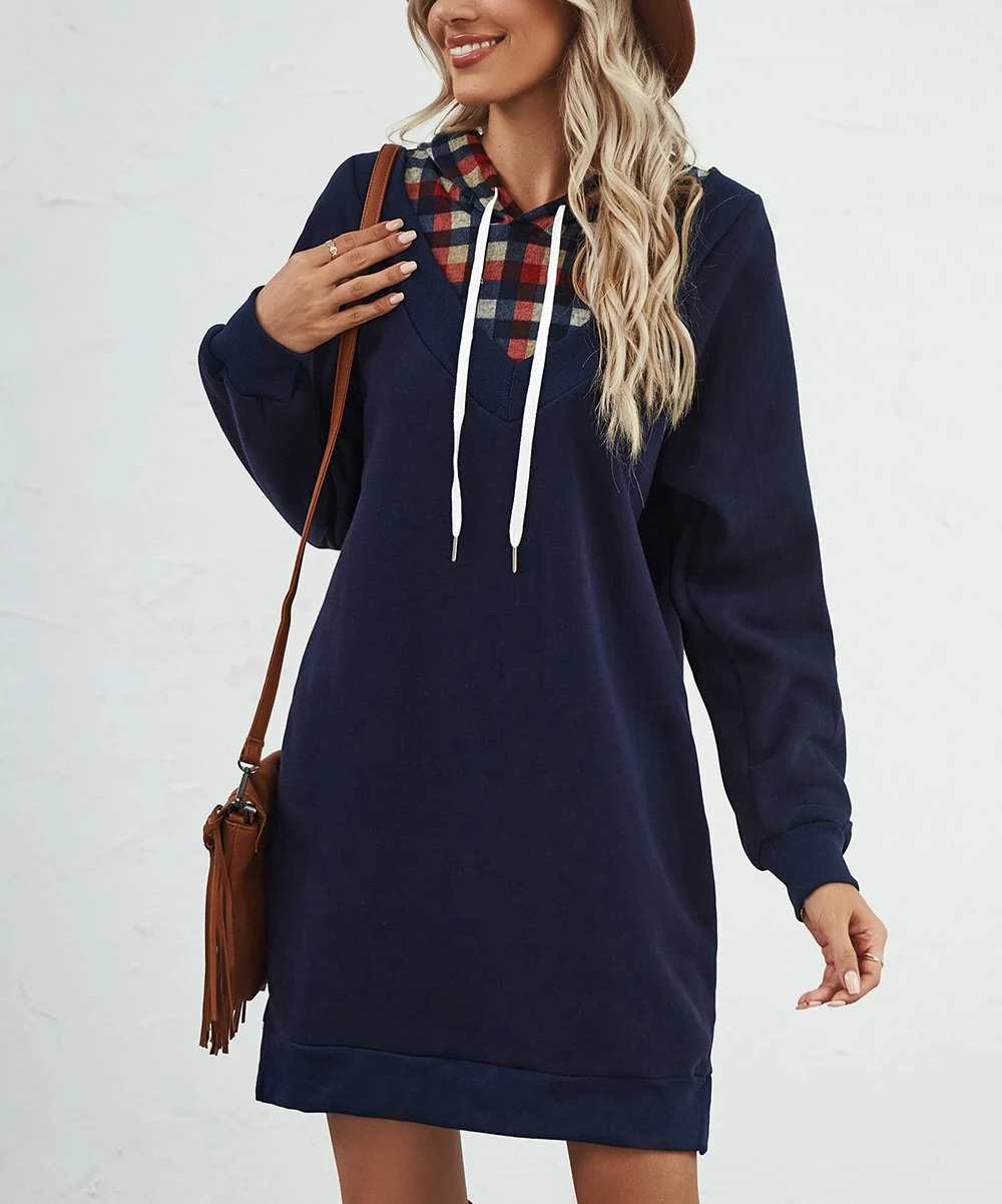 Bring easygoing appeal to your look with this hooded sweatshirt dress complete with side slits.