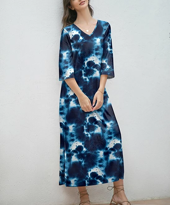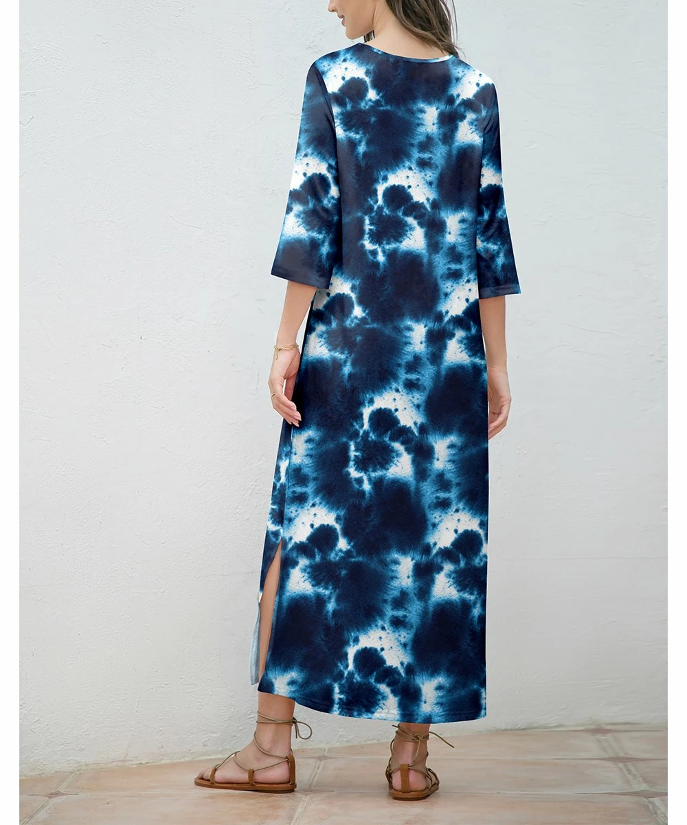 Curate a breezy look by pairing your favorite sandals with this three-quarter sleeve maxi dress made with side-slit hem and lightweight fabric.