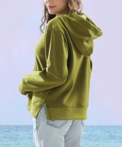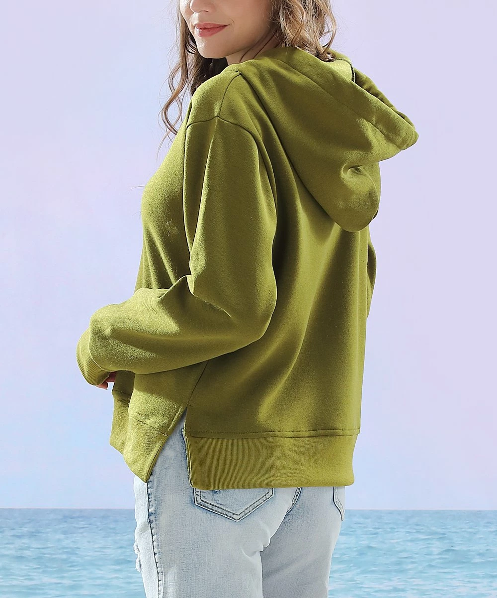Whether you’re out with friends or enjoying a quiet night in, snuggle up in the cozy warmth of this understated hoodie crafted with a v-neck design for modern appeal.