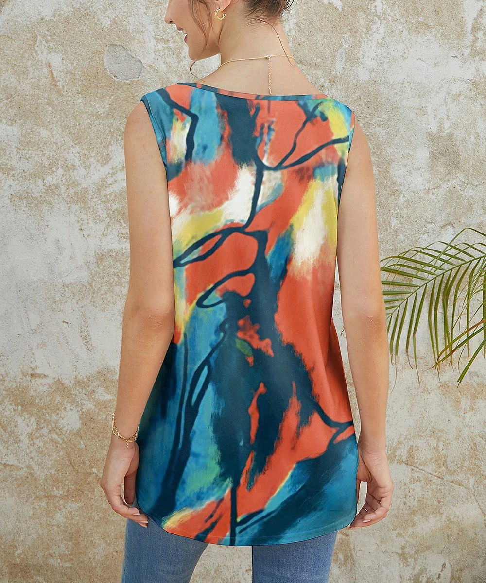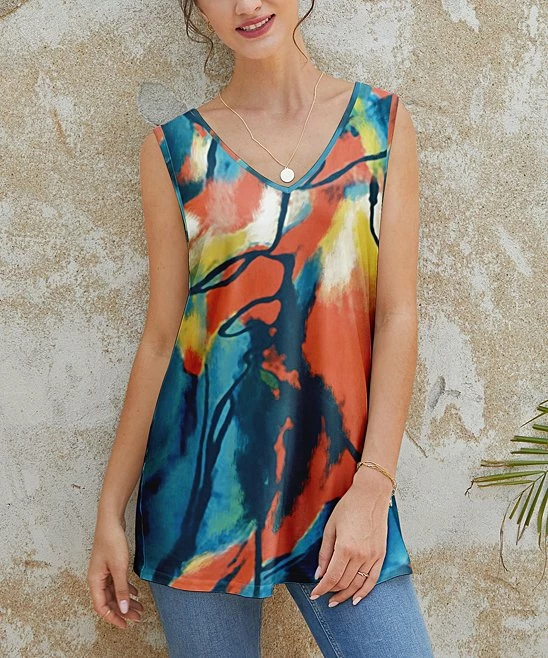 Add a playful pattern to you warm-weather wardrobe with this light and stretchy tank featuring a flattering v-neckline.
