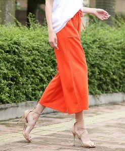 Breeze through those warm-weather days in casual cool style with these lightweight crop pants featuring a drawstring waist and pockets for added convenience.