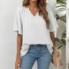 Float through the day with this easy-breezy cape-sleeve top featuring a dash of stretch and a fun flowy handkerchief-hem for added flair.