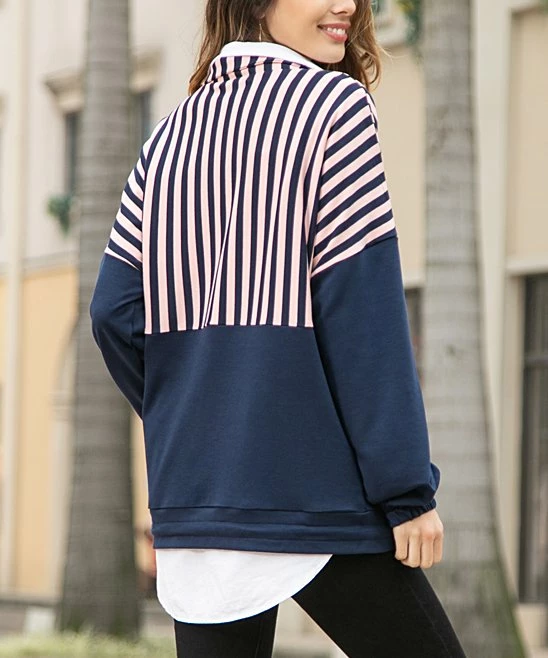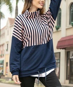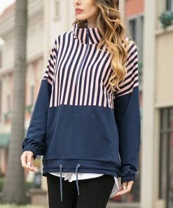 Take on a breezy day in boutique style with this cozy pullover featuring an adjustable hemline and a preppy stripe pattern.