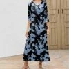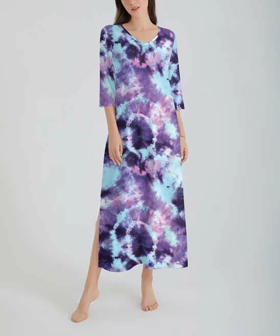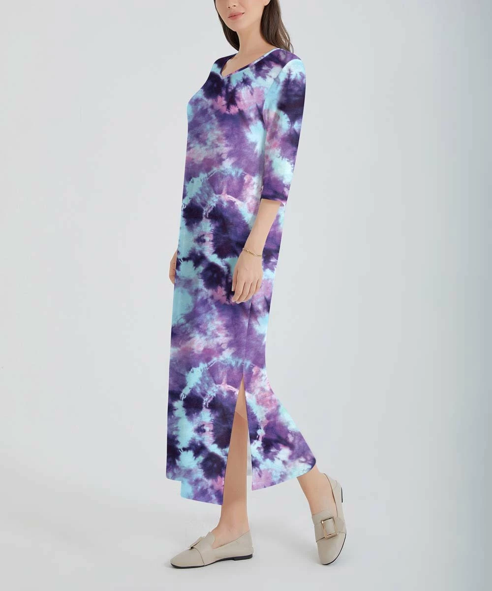 Create effortlessly on-trend ensembles with this tie-dye maxi dress boasting stretch-infused fabric and three-quarter length sleeves for a coveted blend of comfort and style that can span seasons.