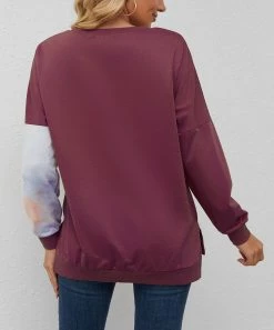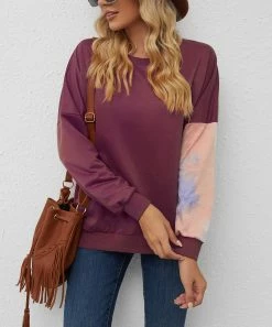 With drop sleeves and a fun asymmetrical contrast sleeve design, this crewneck top is a casual eye-catcher.